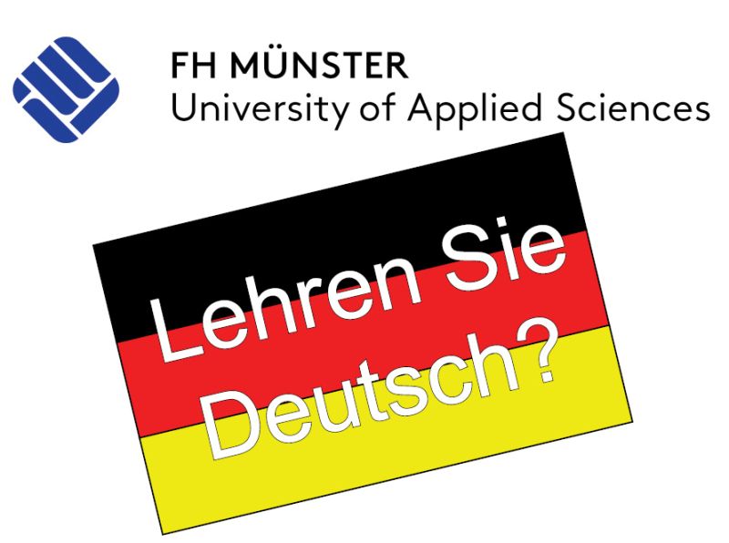 DaF/Z-Dozent*in mit Zertifikat gesucht, A1-B2 à je 4 UE, Mi 17:30-20:45 an der FH Münster, Okt-Jan, März-Juli. Arbeit mit digitalem Lehrmaterial + Tools wichtig. Englisch vorteilhaft. deutschkurs[at]fh-muenster.de