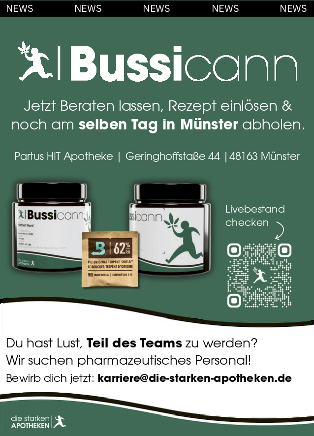 Die PTA-Fachschule Münster bildet Pharmazeutisch-technische Assistentinnen und Assistenten für einen verantwortungsvollen Beruf im Gesundheitswesen aus. Wer Interesse an Naturwissenschaften und Freude am Umgang mit Menschen mitbringt, findet hier eine praxisnahe Ausbildung mit sehr guten Berufsperspektiven in Apotheken, Industrie und Labor. Moderne Labore und persönliche Betreuung sorgen für eine fundierte Qualifikation. Am 31.01.2026 von 10 bis 13 Uhr findet der Tag der offenen Tür statt. Ausbildungsstart ist 2026. Infos und Bewerbung unter www.pta-muenster.de oder auf Instagram @ptafachschulemuenster. Kontakt: info[at]pta-muenster.de, Tel. 0251 / 77758093.