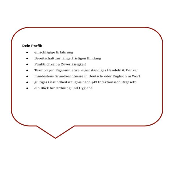 JUNGE KÖPFE sucht Unterstützung im Service & an der Rezeption (m/w/d) – Minijob oder Teilzeit. Zu deinen Aufgaben gehören leichte Servicearbeiten, Empfang und allgemeine Salonorganisation. Arbeitszeit flexibel nach Absprache, ca. 4 Tage pro Woche. Bewirb dich jetzt schriftlich unter: info[at]cabelo.de.
