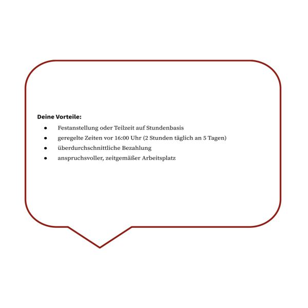 Ausbildung/Weiterbildung/Umschulung (12) · Aushilfe/Helfer (31) · Büro/Verwaltung/Empfang (31) · Callcenter/Mail-Support (4) · Fachangestellte (11) · Fachpflegekräfte/Pflegehelfer (4) · FahrerIn (9) · FSJ/BFD/FÖJ (3) · Gastro/Club/Hotel/Restaurant (45) · Gesundheit/Wellness/Sport (19) · Handwerk/Technik (16) · Kita (3) · Küche/Koch/Köchin (15) · Lager+Produktion (12) · Medien/IT/Online/Marketing/Kulturarbeit (11) · Minijob (46) · Nachhilfe/Unterricht (8) · Päd. (Fach)Kraft, Lehrer*in, Betreuung, Psycholog*in, Psychotherapeut*in, Bildungsarbeit (23) · Pflege/Alltagshelfer (5) · PraktikantIn (3) · Reinigungs-/Hauswirtschaftskraft (17) · Servicekraft (25) · Sonstiges (24) · Studiejob (35) · Supermarkt/Feinkost (1) · Teilzeit (76) · Verkauf (8) · Vollzeit (51) · Werkstudent (25) · Wochenmarkt, Weihnachtsmarkt (5)