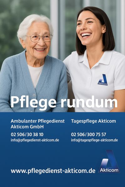 Für unsere TAGESPFLEGE suchen wir zum nächstmöglichen Zeitpunkt eine engagierte Einrichtungsleitung (m/w/d) - PDL, die mit Herz, Organisationstalent und Führungskompetenz unser Team leitet und unsere Einrichtung weiterentwickelt. Ihre Aufgaben: Organisation und Leitung der Tagespflege Führung und Unterstützung des Teams Sicherstellung einer hohen Pflege- und Betreuungsqualität Ansprechpartner für Gäste, Angehörige und Mitarbeitende Das bieten wir: Vergütung nach AVR Caritas betriebliche Krankenversicherung Jahressonderzahlung Ein herzliches, motiviertes Team Gestaltungsspielraum in einer modernen Einrichtung Wir freuen uns auf Ihre Bewerbung! info[at]pflegedienst-akticom.de 02506-3038310 Tagespflege Akticom
