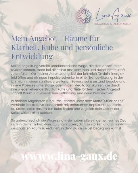 Mit Kreativität, Resilienz & Selbstwirksamkeit zu dir finden: Strickangebote, Meditation & stärkende Impulse. Ergotherapeutin & Coach www.lina-gaux.de