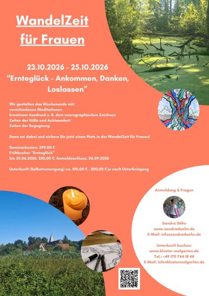 WandelZeit für Frauen im Kloster Malgarten vom 23.10.2026-25.10.2026 - Zeit für kreativen Ausdruck, Stille und Begegnungen. Infos & Anmeldung: www.sandradaehn.de