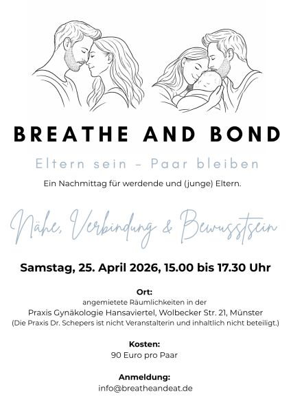 Eltern sein – Paar bleiben! Der Workshop richtet sich an alle Paare, die sich bewusst auf die Veränderungen in ihrer Beziehung als werdende oder junge Eltern vorbereiten möchten, um als Paar weiterhin in Verbindung zu bleiben. 25.4.2026, 15-17:30 Uhr, 90€/Paar www.breatheandeat.de/breathe