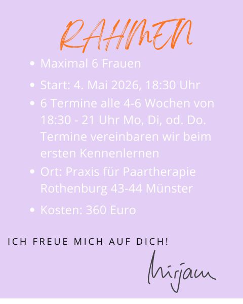 feeling-me! Dating, Liebe und Beziehung. Eine Empowerment-Gruppe für Frauen. Kennenlernen am 4. Mai. Infos unter www.mirjam-faust.de