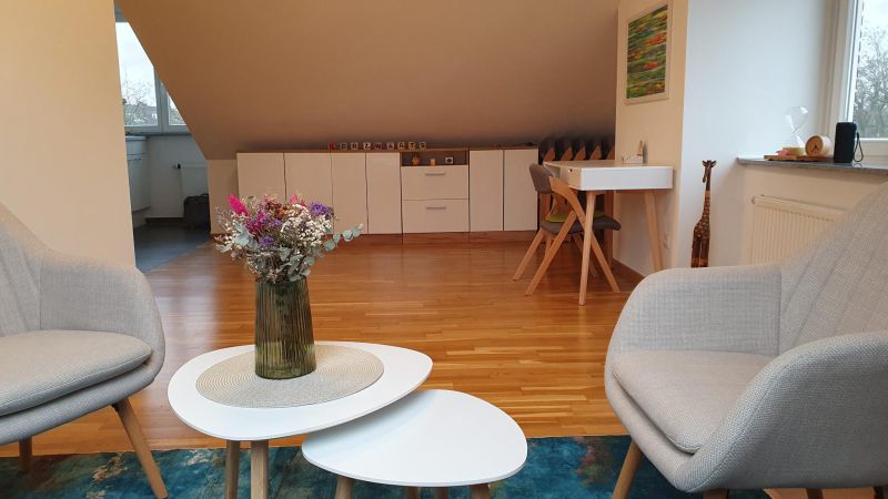 Coachingraum (35 qm) im Dachgeschoss stundenweise zu vermieten. Ideal für Einzelsettings & Kleingruppen (6–8 Pers.). Ruhige Atmosphäre, stilvoll eingerichtet. www.zwischendenzeilen-coaching.de