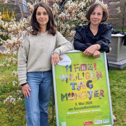Am 9. Mai 2026 veranstaltet die Freiwilligenagentur Münster den 11. Freiwilligentag und rückt das Ehrenamt unserer Stadt in den Fokus! Von 11 bis 16 Uhr können Sie an diesem Tag verschiedene Mitmach-Aktionen rund um das Gesundheitshaus erleben. Informieren und vernetzen Sie sich mit verschiedenen Organisationen und stärken Sie sich am Coffeebike. Wir freuen uns auf Sie!